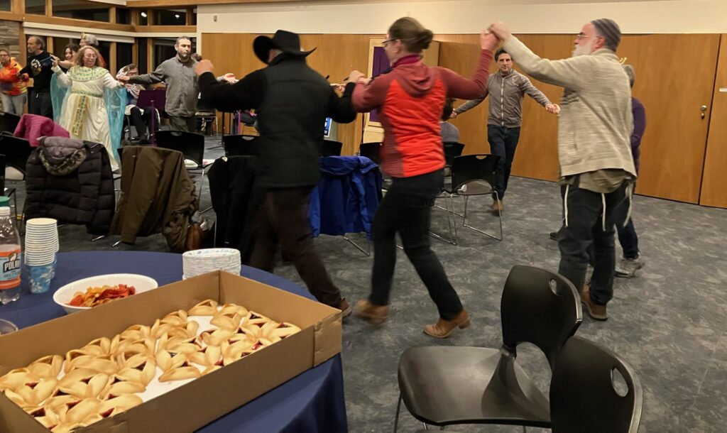 Over 30 members and guests gathered for a fun-filled “No Kings Purim” celebration at TvO, with live music provided by “Lavine and the Flying Machine” featuring Jennie Lavine! [March 2026]