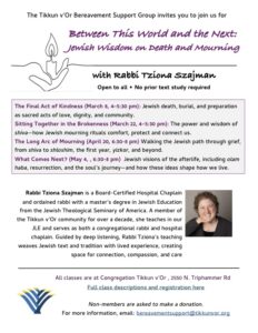 The Tikkun v’Or Bereavement Support Group invites you to join us for a class series: